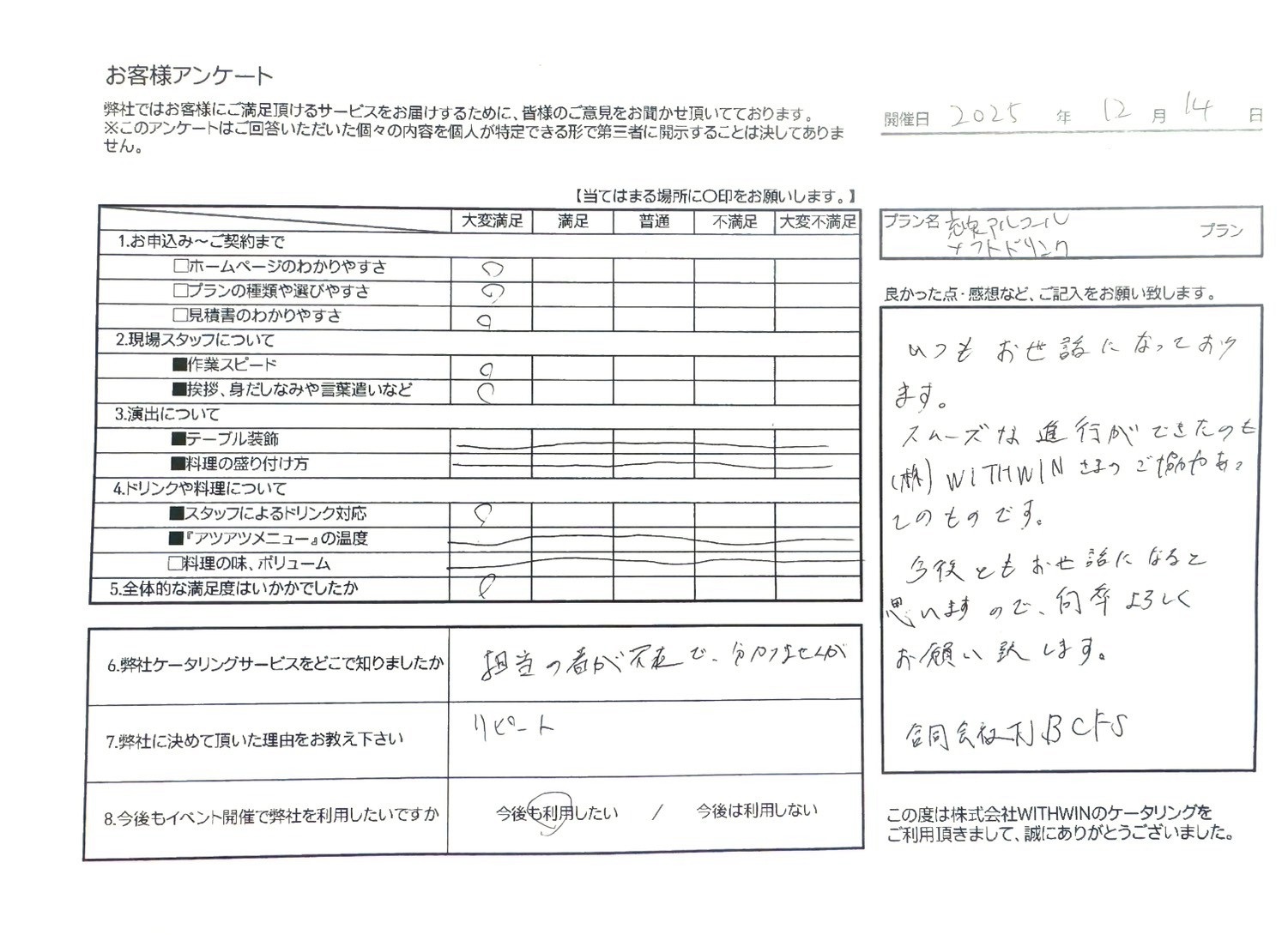 いつもお世話になっております。スムーズな信仰ができたのも(株)WITHWIN様のご協力あってのものです。今後ともお世話になると思いますので、何卒宜しくお願い致します。