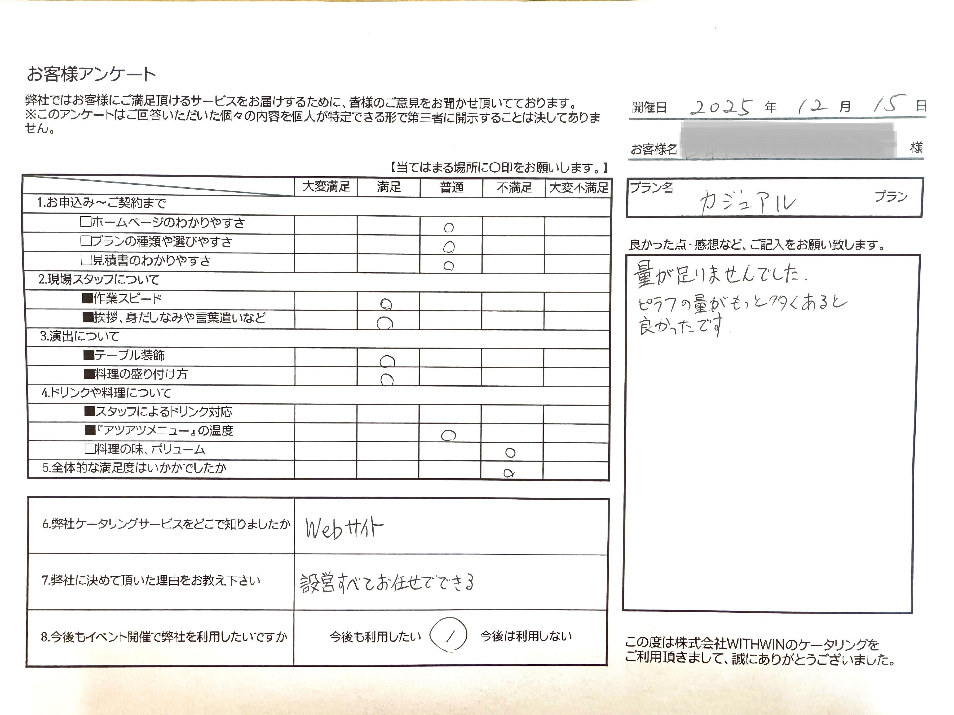 某様、この度はピーナッツケータリングをご利用いただき、誠にありがとうございました。