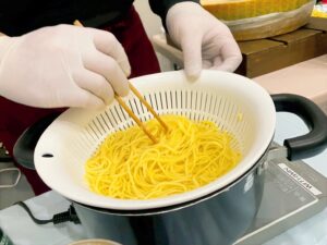 巨大チーズの中で仕上げる、出来たてアツアツの本格チーズパスタLIVE。