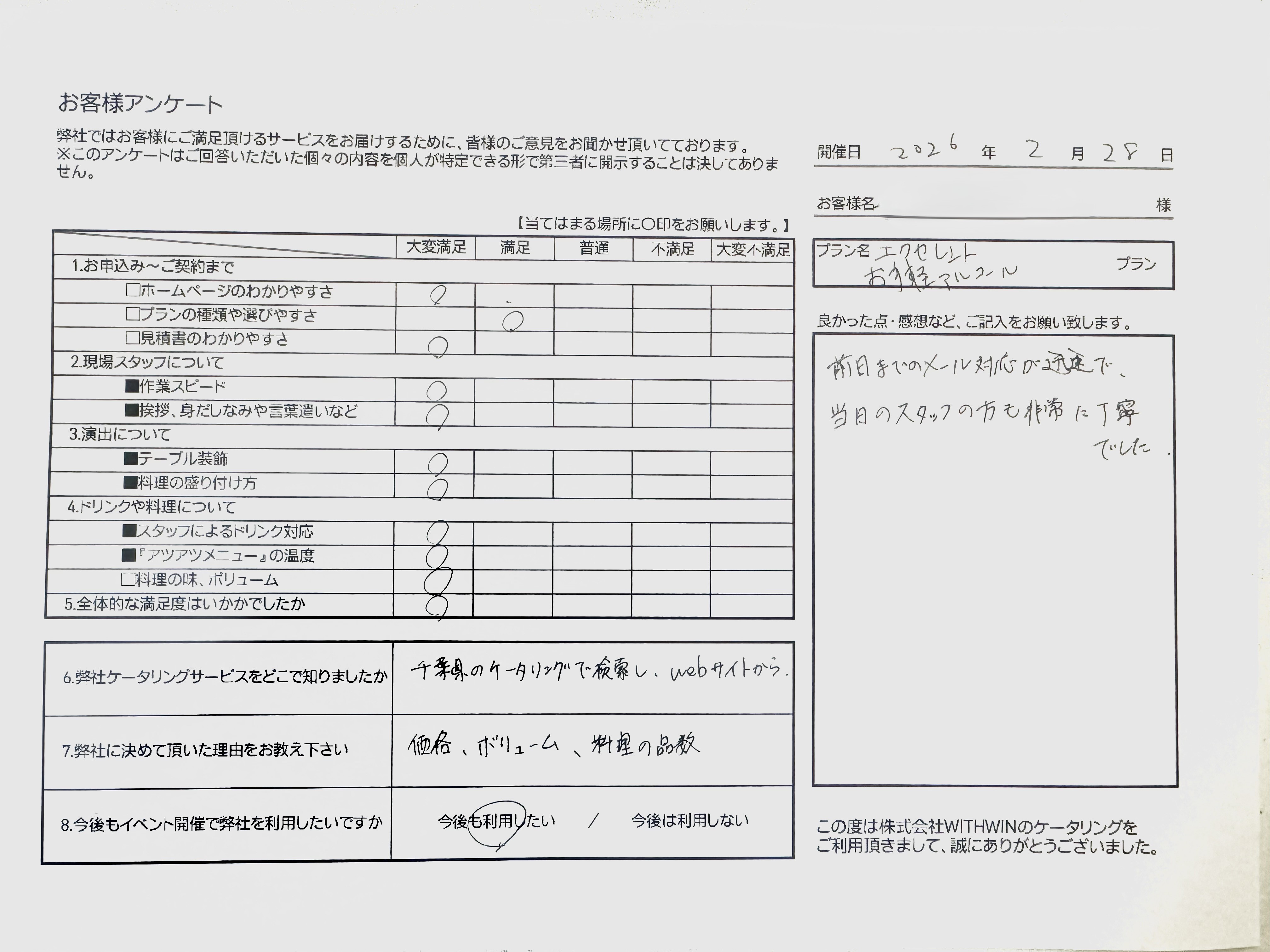 ピーナッツケータリングをご利用いただきまして、誠にありがとうございました。