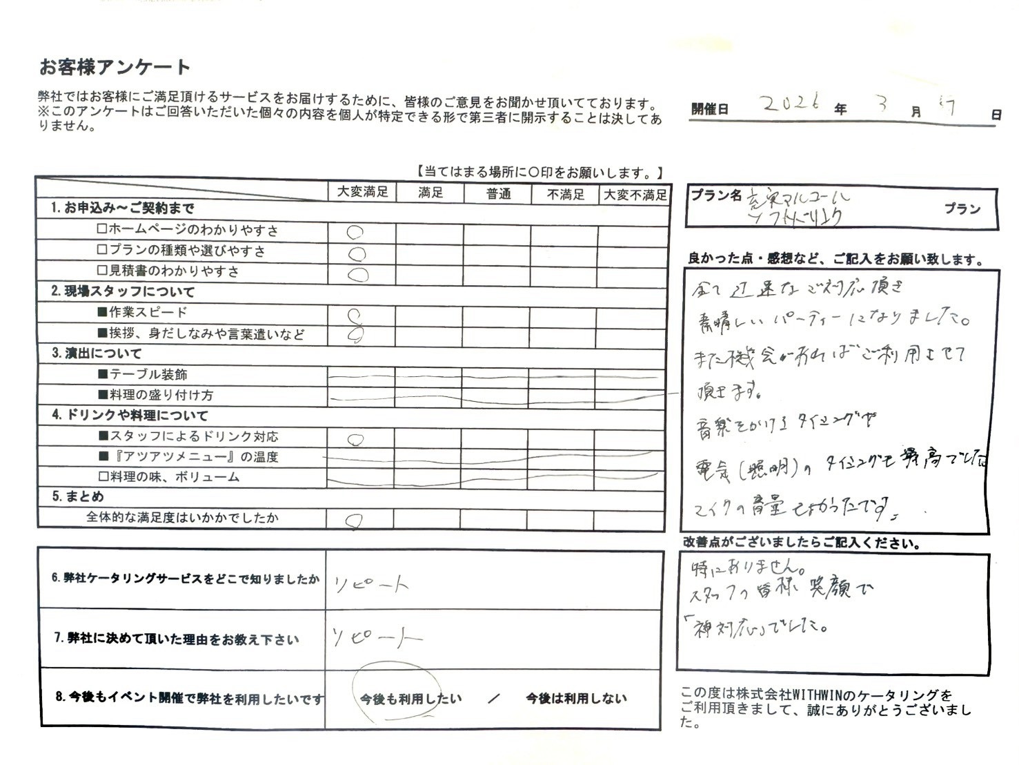 この度はピーナッツケータリングをご利用いただき、誠にありがとうございました。